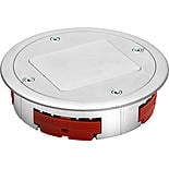 Golvgenomföring avsedd att passa en specialversion av den tvåsidiga serviceposten. Ram med fästenheter, tvådelat lock och tätningsskum som skyddar mot damm och våttorkning av golv ingår. Locket kan användas som